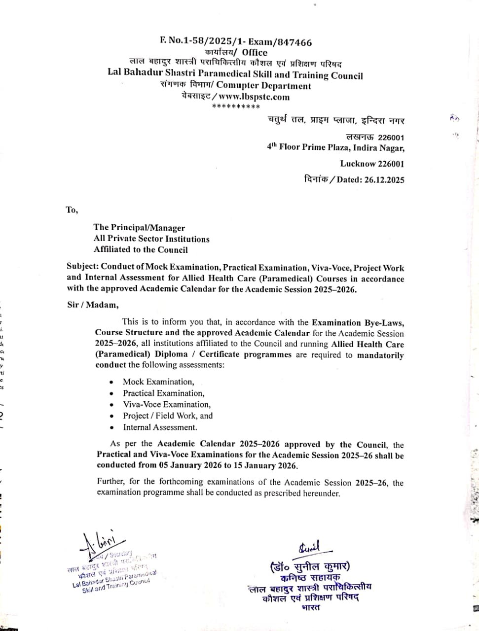 LBSPSTC Examination BYE-Laws